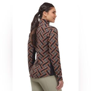 A snuggly fleece performance top made for cold-weather riding, designed in dynamic prints to express your equestrian style. Wonderfully soft plush interior keeps you warm, with a soft matte exterior for comfort.