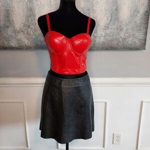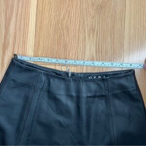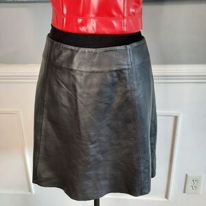 Leather size Small black mini skirt. A line. Silver exposed zipper at back. Super soft high quality real leather.