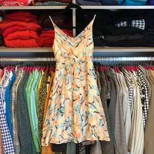 Anne Klein orange/blue back zipper back tie v neck sleeveless dress size 2P