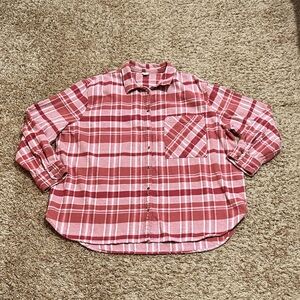 [Aerie] Red White Plaid Shacket Button Down Flannel Casual Streetwear XXL