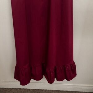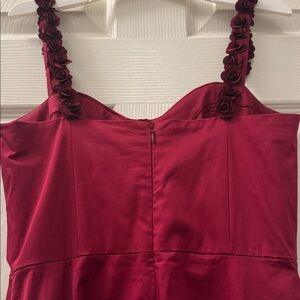 Elegant deep red midi dress with a fitted bodice. Features delicate strap detailing. Perfect for any occasion.
