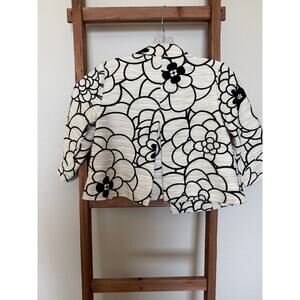 Eci Cropped Floral Linen Blend Blazer/Jacket