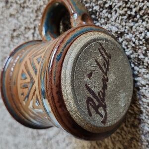 WOT. Lot of 4 handmade pottery coffee/tea mugs. Each one is made by a different artist collected from different art fairs. No chips, grazing, cracks or breaks.