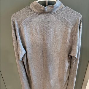 Stylish gray quarter-zip pullover. Perfect for casual wear. Size large