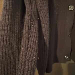 Elegant black cardigan with button closure. Soft knit fabric. Ideal for layering. Some pilling as shown in pictures