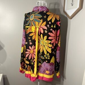 Cynthia Rowley Tunic Blouse Size 1X Button-up in Vivid Yellow Pink Purple Floral