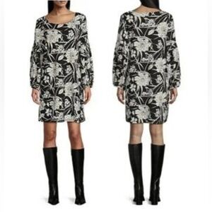Antonio Melani Size 12 Iris Linen Floral Mockneck Short Sleeve Dress $299. New with tag