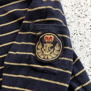 Lot of 3 Ralph Lauren shirts in size large. Well loved condition. Very slight spot on front of red and blue classic RL shirt. Gold and black shirt in great condition with elbow length sleeves. Blue and gold shirt has slight discoloration at front neckline, 3/4 length sleeves. No other flaws noted. Save on shipping!