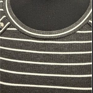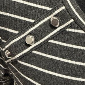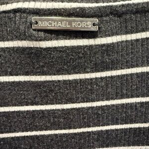 Michael Kors Women’s Long Sleeve Gray & White Striped Pullover Sweater, Large