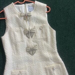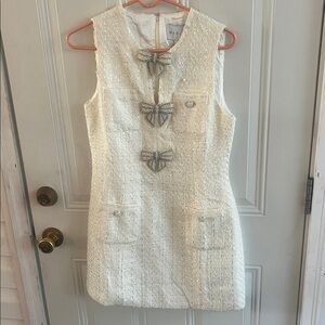 Mable Women’s Dress Medium Elegant Cream Stunning Bows Accent MISSING button