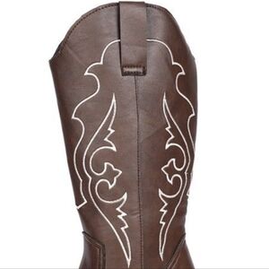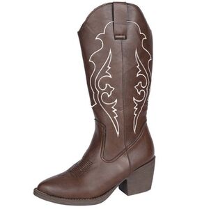 These western embroidered vegan leather cowboy boots capture the essence of Westerncore, ranch girl aesthetic, and cowgirl chic fashion. Designed with classic stitching details and a bold, structured silhouette, they embody the timeless spirit of American western style while embracing modern, cruelty-free craftsmanship. The mid-height block heel and pointed toe create a confident silhouette that pairs effortlessly with denim, flowy dresses, or festival looks. Crafted from premium vegan leather, these boots deliver durability and comfort while maintaining an authentic cowboy boot look. Available in rich brown, they blend rodeo-inspired flair with statement fashion energy, channeling both frontier heritage and modern-day cowgirl Western glamour. Perfect for country concerts, outdoor adventures, or boho-chic streetwear, these boots bring rustic charm and bold confidence to every step.