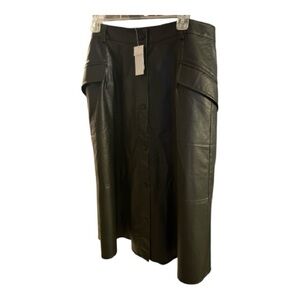 Banana Republic Olive Green Faux Leather Midi Skirt with Button Detail NWT