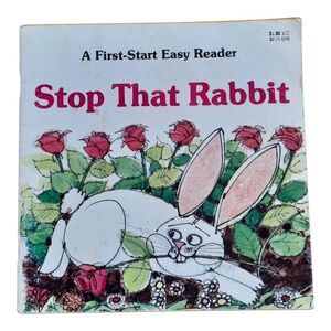 A charming children's book titled 'Stop That Rabbit' featuring a playful rabbit illustration with vibrant colors.