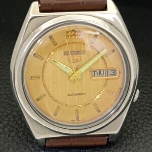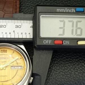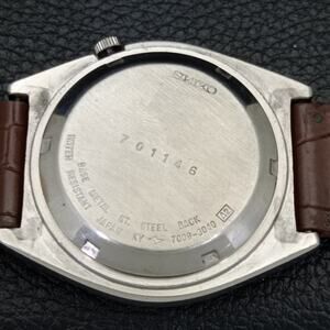 This watch has a stainless steel case in great condition with almost no flaws. The face features Gold accents on a Gold Face giving an awesome vintage look overall. It also has a date function!