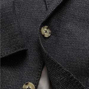Never been worn. A small amount of stretch brings a relaxed, comfortable feel to this textured Australian Wool and Cotton jacket. It was expertly milled in Italy by Guabello. Superb quality.