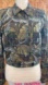 • Features: Cropped length, button front, flap chest pockets, striking botanical/leaf print, tailored fit