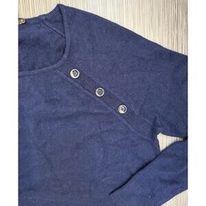 J McLaughlin Navy Blue Angora/Wool Blend Sweater Size Small Button Accents