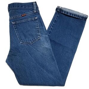 Vintage 1980s distressed dark wash jeans by Rustler.