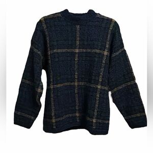 Embrace warmth and style with this navy plaid turtleneck sweater. Ideal for a chic, layered look. Vintage