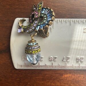 The pendant measures approximately 3 inches long, and 2 1/2 inches wide. The clip on earring measure approximately 1 3/4 inches long, and 1 inch wide. They are stamped made in China. They are not signed Heidi Days as this was the time period before she started selling for QVC.