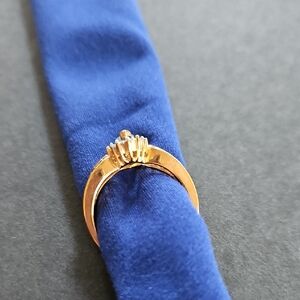 @shineagainjewel there is no mark on the band so gold tone plate is assumed. Stone is believed to be blue topaz.