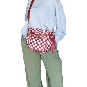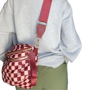 Checkered Crossbody Bum Bag — Maroon & Light Pink