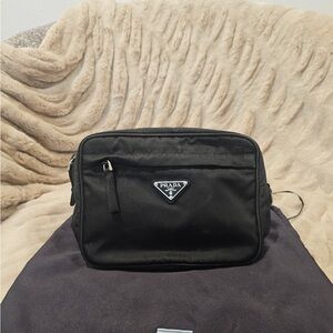 Re Nylon Combat Boot Chic black lace-up boots by Prada. Perfect for any occasion. • 3 1/4" heel, (82mm), 1 1/4" platform. Includes shoes and box.