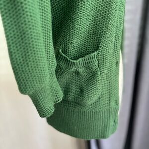 Chic and cozy cardigan with button-up front. Features two front pockets. Perfect for layering.