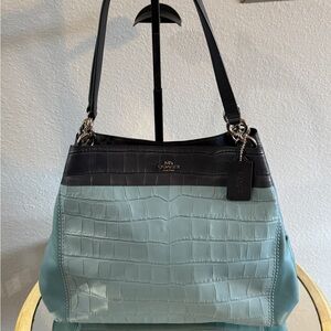 Coach Navy and Teal Croc-Embossed Shoulder Bag