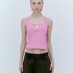 Korean Design Style Pink Sleeveless Square-neck Ribbed Tank Top