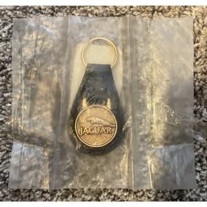 Vintage LEAPING JAGUAR KEYCHAIN Black Leather Made In UK Gold Tone 1970s New