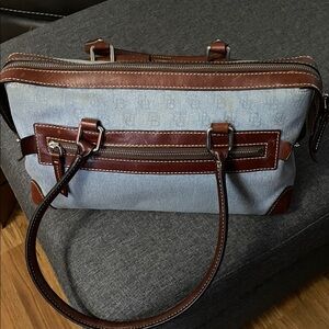 Vintage! 🩵 Denim Dooney & Bourke w Leather & Blue Monogram Double Pocket Satchel