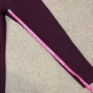 Fabletics Bra and Leggings set in burgundy. Sports bra is Dash Seamless Bra II in size large, featuring strappy low back and no padding. Tag was cut because it was long and itchy. Leggings are Define Powerhold High-Waisted Legging in size large short. Both worn a few times.