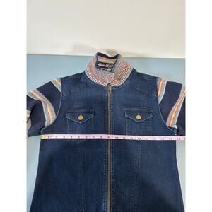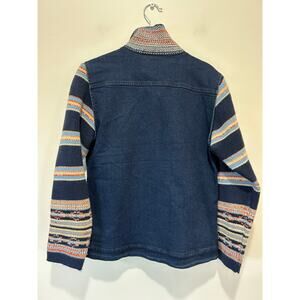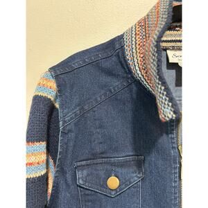 Serengeti jean jacket womens size S knit sleeves and collar zipper boho