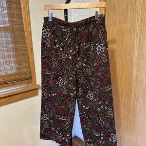 Brown Pull On Adjustable Fun Patterned Pants Size 14 Breckenridge Culottes A10