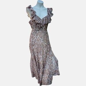 MINKPINK Paisley Ruffle Midi Dress Boho Style Size M