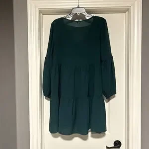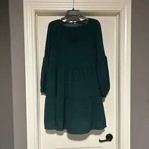The Amoretu Women's Tunic Dress is a stylish and comfortable choice for casual occasions. This loose and flowy swing dress features long sleeves and a flattering V-neck neckline, making it a versatile option for everyday wear. Perfect for fall family photos. Size medium