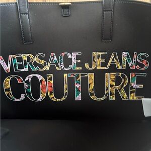 NWT- Elegant black Versace Jeans Couture tote bag with vibrant floral patterns. Perfect for adding a touch of style to any outfit. Great travel tote with plenty of room!