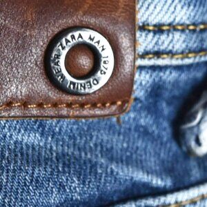 Zara Man Premium Denim Jeans Size 31 USA Distressed Wash Straight Fit Rugged
