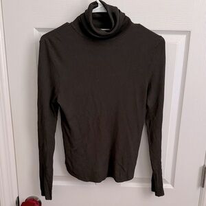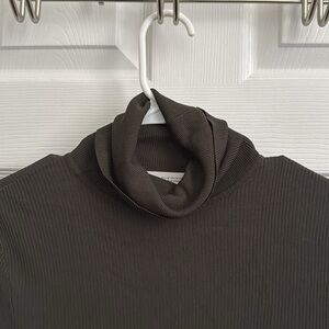 Chic olive turtleneck with ribbed texture. Ideal for cozy wear.