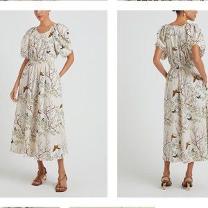 Goop G. Label Chic Cream Floral Midi Dress with Puff Sleeves