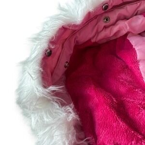 A delightful pink ski jacket for young adventurers. This charming outerwear piece is designed with a cozy fleece lining for warmth and features a faux fur trimmed hood for added style and protection against the elements. Its vibrant color blocking and durable construction make it perfect for snowy escapades, winter sports, or simply staying snug on chilly days.