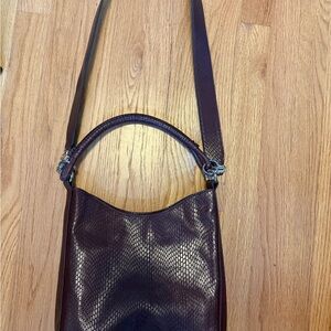 Chic black leather crossbody bag. Features gold accents. Perfect for any occasion. Reposhing , slightly too small for me. Measures: 7.5 inches wide, 6.5 inches high, 3.75 inches deep. Adjustable strap drops 22 inches.