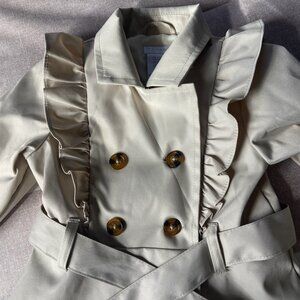 EUC Tahari Stylish Beige Ruffle Trench Coat with Belt Girls Sz XS (4)