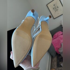 Elegant sky blue heels with dazzling crystal details. Slingback strap for comfort and style. New in box, never worn, comes from smoke free home. Target brand.