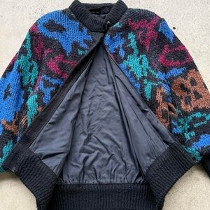 Vintage 80’s Rochelle California Colorful Abstract Full Zip Lined Oversized Sweater Jacket Womens