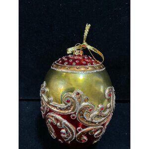 VTG Set of 6 Blown Glass Egg Shaped Red Gold Embossed Christmas Ornaments 5.5”