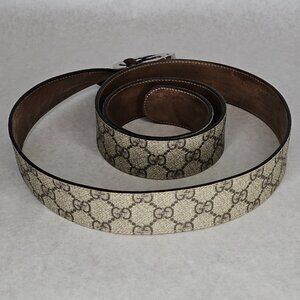 Men's Gucci Supreme GG Canvas Leather Belt 51 Inches Long 1.5" Wide 1 Tear
