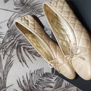 CHANEL Women G26250 Quilted Soft Lambskin Ballet Flats Cap Toe CC s, Size 38 EU