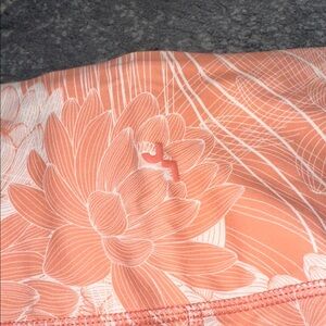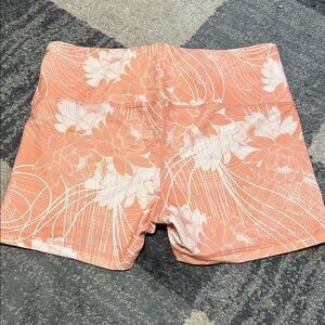 JoyLab athletic shorts with floral pattern. Peach and white design. Ideal for workouts and casual wear. Size XL. Worn once, excellent used condition. 3-4” inseam. High waisted band